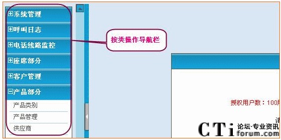 管理員可以為不同的用戶設(shè)置不同的瀏覽權(quán)限。一般,管理人員可以看到:系統(tǒng)管理、呼叫日志、電話線路監(jiān)控、座席部分、客戶管理、產(chǎn)品部分6模塊,座席人員只可以看到座席部分、客戶管理、產(chǎn)品部分3模塊。