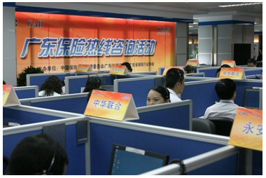 2007年6月23日下午,由中國電信廣東公司和廣東保險監(jiān)督管理局合作舉辦的4008991288廣東保險業(yè)電話咨詢熱線活動在中國電信廣州分公司客戶服務(wù)中心舉行。省保監(jiān)局、省保險協(xié)會等保險監(jiān)管行業(yè)人員進行現(xiàn)場監(jiān)聽,廣東省內(nèi)39家保險公司的44位總經(jīng)理親自接聽市民的咨詢或投訴,其他保險資深專家接受市民保險業(yè)務(wù)咨詢。兩小時的熱線活動成功接通1122個電話,并當(dāng)場解決和答復(fù)856個咨詢和投訴問題。
