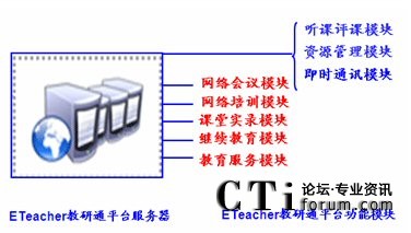 紅杉樹的“教研通”產(chǎn)品是紅杉樹根據(jù)客戶的具體情況,在自身產(chǎn)品“紅杉通”的基礎(chǔ)上,定制擴展而來,是一套適合于教育城域網(wǎng)的,集即時通訊、網(wǎng)絡(luò)會議、網(wǎng)絡(luò)培訓(xùn)、課堂實錄、聽課評課、資源管理、繼續(xù)教育、教育服務(wù)等功能于一體的綜合性教育應(yīng)用系統(tǒng)(包括服務(wù)器及軟件平臺)。