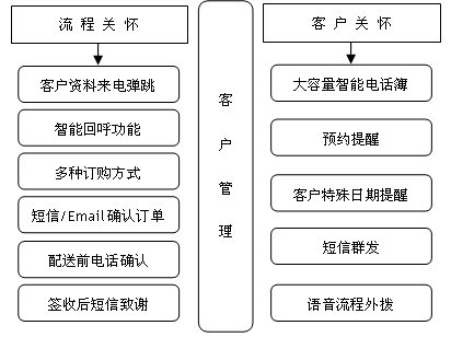 可與企業(yè)既有的800或400電話相結(jié)合,包含1至16個客服人員坐席設(shè)置,主要處理實時的產(chǎn)品售前售后咨詢、電話訂單受理等呼入類業(yè)務(wù),也能滿足以外撥為主的客戶關(guān)懷需求;同時,客服人員能夠通過系統(tǒng)隨時了解各種商品庫存情況,以便對網(wǎng)上交易提供及時有效的服務(wù)。來電彈跳客戶資料中必須顯示出客戶的歷史消費詳細(xì)信息,以及正在進(jìn)行中的交易詳情。