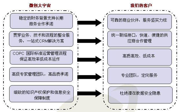 依托于兩大成功企業(yè)背景平臺(tái),微創(chuàng)大宇宙從組建伊始即擁有微創(chuàng)軟件的專業(yè)技術(shù)支持能力、強(qiáng)大技術(shù)開發(fā)實(shí)力加之transcosmos的成熟流程運(yùn)營體系、豐富行業(yè)實(shí)踐經(jīng)驗(yàn)及雙方堅(jiān)實(shí)行業(yè)背景,是微創(chuàng)大宇宙一躍成為目前中國呼叫中心外包領(lǐng)域成長(zhǎng)最快的企業(yè)。