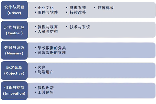 呼叫中心能力成熟度認證涉及設(shè)計與規(guī)范、運營與管理、數(shù)據(jù)與績效、顧客體驗、創(chuàng)新與提高5大類,14項評審指標以及若干個值得關(guān)注的管理項目。是一套完整的“客戶為中心”的績效管理工具。