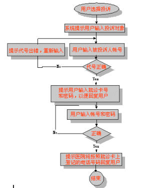 在處理用戶投訴時,要求對醫(yī)院所有服務(wù)人員分配代碼。用戶投訴時按照服務(wù)代碼進行投訴。同時,醫(yī)院將對所有投訴用戶進行回復。如通告處理結(jié)果,向用戶道歉等。對用戶回復時,將按照用戶在申請就診卡時留下的電話號碼進行回復。這種也可以促使用戶留下真實的電話號碼。用戶可以到醫(yī)院電話號碼。