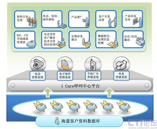 依托先進(jìn)CTI技術(shù),基于現(xiàn)代服務(wù)營(yíng)銷(xiāo)理念,系統(tǒng)實(shí)現(xiàn)銷(xiāo)售線索挖掘、電話銷(xiāo)售跟蹤、銷(xiāo)售機(jī)會(huì)孵化、市場(chǎng)機(jī)會(huì)勘察、B2B/B2C市場(chǎng)調(diào)查、會(huì)議邀請(qǐng)、客戶關(guān)系改善、定期業(yè)務(wù)催辦等多種電話營(yíng)銷(xiāo)服務(wù)。