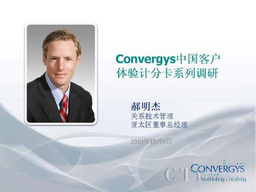 CTI論壇(ctiforum)12月16日消息(記者 楊毅):關系管理領域的全球領袖Convergys今日在CTI論壇獨家發(fā)布了“傾聽中國客戶的心聲”為主題的“2010年中國客戶體驗計分卡研究”成果視頻,在該視頻中,Convergys 亞太區(qū)董事總經(jīng)理 Benjamin Hart-郝明杰以實際、具體的數(shù)字和圖表向大家進行全面的視頻展示。