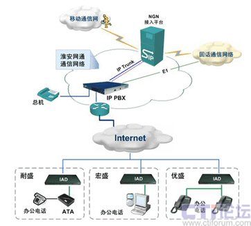 采用NGN+IP PBX的解決方案,不僅可以增強(qiáng)IP PBX組網(wǎng)和業(yè)務(wù)通信能力,還可以配合運(yùn)營商的NGN平臺(tái)開拓多種業(yè)務(wù)模式,成為NGN的有效擴(kuò)展,為運(yùn)營商和最終用戶提供雙贏的有利協(xié)助。淮安網(wǎng)通就采用了Zed-3(捷思銳科技)的IP PBX進(jìn)行大客戶的語音接入。該IP PBX主要提供了用戶分機(jī)號(hào)碼分配功能,并為用戶提供語音池(IVR)、語音信箱、保密呼叫、NGN業(yè)務(wù)接入等多種應(yīng)用服務(wù)。
