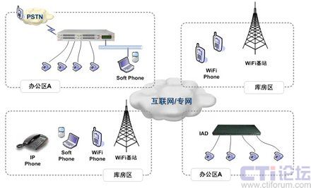 隨著北京西南物流中心業(yè)務(wù)的不斷發(fā)展,其庫(kù)區(qū)在不斷落成,倉(cāng)儲(chǔ)面積仍不斷擴(kuò)大。由于各個(gè)庫(kù)區(qū)及辦公樓都具有無(wú)線Mesh網(wǎng)絡(luò)覆蓋,西南物流中心在現(xiàn)有無(wú)線網(wǎng)絡(luò)基礎(chǔ)上陸續(xù)開(kāi)展企業(yè)信息化業(yè)務(wù)。由于各個(gè)庫(kù)房與辦公樓之間都有一定距離,因?yàn)樵谥行牡耐ㄐ懦杀緲?gòu)成中,內(nèi)部業(yè)務(wù)部門之間的溝通占據(jù)了絕對(duì)的比重,經(jīng)常居高不下的通信成本嚴(yán)重制約了北京西南物流中心業(yè)務(wù)的發(fā)展,于是,現(xiàn)實(shí)的溝通需求與高昂的通信成本之間的矛盾開(kāi)始凸現(xiàn),內(nèi)部語(yǔ)音通信就成為了西南物流中心需要解決的首要任務(wù)之一。