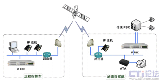 在有關(guān)部隊(duì)的應(yīng)用案例中,有兩方面比較常見,應(yīng)用也比較廣泛。首先是借助衛(wèi)星的遠(yuǎn)程指揮通訊,我們?yōu)榈孛鏅C(jī)關(guān)與遠(yuǎn)程指揮車之間架設(shè)起溝通的橋梁,除了電話、傳真等基本業(yè)務(wù),還通過IP-PBX系統(tǒng)提供了多方會(huì)議、語(yǔ)音留言、熱線電話等擴(kuò)展業(yè)務(wù),在即使是雙星四跳的高延時(shí)環(huán)境下建立起穩(wěn)定的語(yǔ)音通信,保障了部隊(duì)指揮的有效下達(dá)。