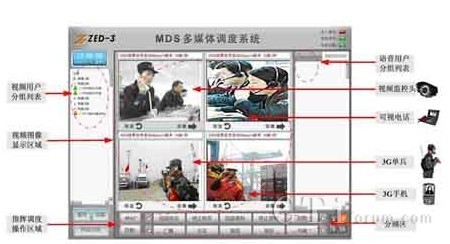 一方面,MDS系統(tǒng)可實現(xiàn)對行業(yè)用戶各種終端類型的調(diào)度,如通過有線IP網(wǎng)絡(luò)實現(xiàn)對有線調(diào)度話機進行語音調(diào)度,對固定點監(jiān)控攝像頭進行視頻調(diào)度;通過PSTN/GSM/CDMA/3G網(wǎng)絡(luò)實現(xiàn)對外線電話進行遠程語音調(diào)度;通過3G網(wǎng)絡(luò)實現(xiàn)對遠程單兵人員進行遠程音視頻調(diào)度;通過無線寬帶網(wǎng)絡(luò)實現(xiàn)對移動終端進行音視頻調(diào)度;通過IP網(wǎng)絡(luò)召開遠程視頻會議。
