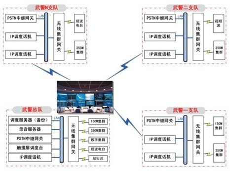 1)融合現(xiàn)有通信終端:可把系統(tǒng)內(nèi)部現(xiàn)有各種常規(guī)對(duì)講、數(shù)字集群、短波/超短波電臺(tái)等通信系統(tǒng)融合到多媒體調(diào)度平臺(tái)里互聯(lián)互通,由武警總隊(duì)調(diào)度臺(tái)進(jìn)行統(tǒng)一指揮調(diào)度。