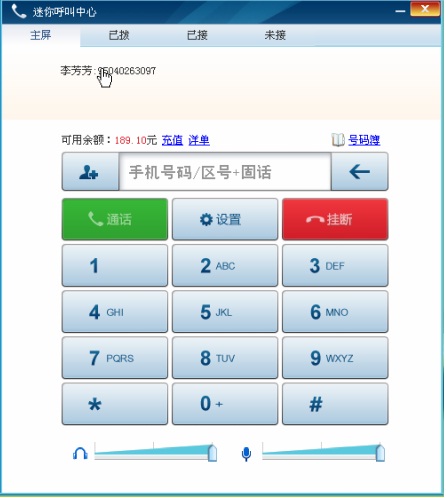 點(diǎn)擊迷你呼叫中心圖標(biāo),迷你呼叫中心的主屏自動彈出。
