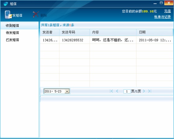 再看短信,點(diǎn)擊短信圖標(biāo),主屏自動彈出。收到短信、待發(fā)短信、已發(fā)短信分類明確;接收日期、發(fā)送者等信息清晰,便于查詢。