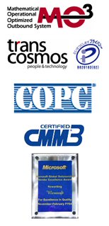 引進(jìn)國際領(lǐng)先的MO3(獲得2006 “Contact Center World Award” 最優(yōu)秀獎)呼出技術(shù):MO3是母公司transcosmos獨(dú)力研發(fā)的呼出服務(wù)體系。通過對數(shù)據(jù)的充分分析和挖掘,以“顧客行動模式”為基礎(chǔ),預(yù)測“哪個顧客、哪個坐席、在哪個時間點(diǎn)、提供什么樣的服務(wù)、進(jìn)行怎樣的進(jìn)一步接觸”,以及精確計算是否收到最大投資和成效比(ROI),實行最有效的和顧客接觸的運(yùn)營。