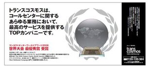 作為信息處理外包產(chǎn)業(yè)的先驅(qū),transcosmos公司于1966年正式開始了自己的業(yè)務(wù)。從此以后,我們?nèi)诤喜⑤敵鋈瞬排c技術(shù),提供高附加值的外包服務(wù),致力于增強(qiáng)客戶公司的競爭力,F(xiàn)已拓展到12000多人的規(guī)模,是日本最大和最著名的外包客戶互動服務(wù)供應(yīng)商之一。目前在專業(yè)技術(shù)支持領(lǐng)域為列日本第一。