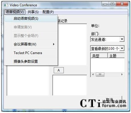 客戶端登錄以后,選擇一臺(tái)配置好的電腦發(fā)起視頻會(huì)議,雙擊組集合下面的組,在打開(kāi)的對(duì)話框中,點(diǎn)擊[語(yǔ)音視頻]/[啟動(dòng)語(yǔ)音視頻]: