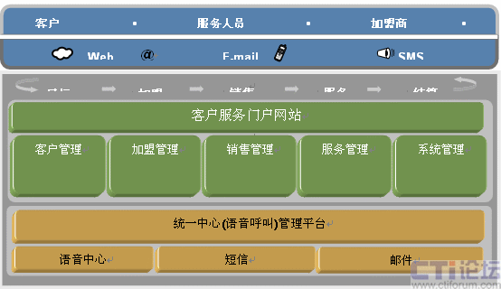 - 在統(tǒng)一通訊服務(wù)平臺(tái)上,構(gòu)建以電話(huà)、短信、郵件為服務(wù)方式的客戶(hù)管理系統(tǒng)