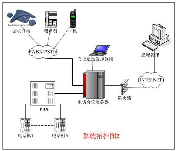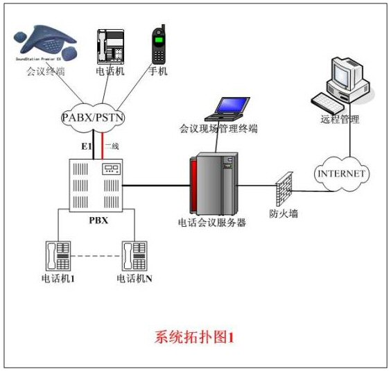 整個系統(tǒng)的拓撲結(jié)構(gòu)一般有以上兩種連接方式,拓撲結(jié)構(gòu)如上圖所示。圖1中的用戶交換機直接和公網(wǎng)PSTN或電信交換機相連。異地與會者必須先進入用戶交換機后,再進入電話會議主機。圖2中的連接方式是把電話會議系統(tǒng)主機直接和公網(wǎng)PSTN或電信交換機相連,異地與會者直接通過公網(wǎng)進入電話會議主機。