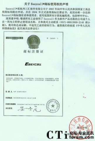 CTI論壇(ctiforum)07月31日消息: 近日,杭州三匯軟件有限公司就Easycall®商標使用權作出聲明,聲明全文如下: