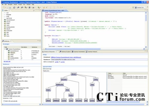 這里強(qiáng)調(diào)的Eclipse插件,除了本身作為優(yōu)秀工具,還提供了附加于Eclipse工作臺內(nèi)的順暢互操作性:你可以一邊看著對應(yīng)呼叫者輸入的對話流程,一邊檢查和完成語音識別語法;你也可以一邊構(gòu)建連接后臺的Web服務(wù)代碼,一邊通過簡單地拖放來調(diào)整應(yīng)用邏輯。開發(fā)者首次擁有了對所有應(yīng)用方面的同時(shí)控制,無須在不同IDE之間進(jìn)行切換,或者在選擇單一環(huán)境時(shí)在特性上的折衷。