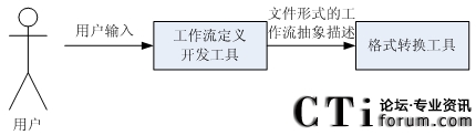 IVR系統(tǒng)的過程定義工具是一個可視化的軟件工具,它主要用于定義工作流模型中各個活動之間的關(guān)系[22]。工作流程過程定義向用戶提供對實際業(yè)務(wù)處理過程分析、建模的手段。其輸入輸出可以用圖3.2表達(dá):