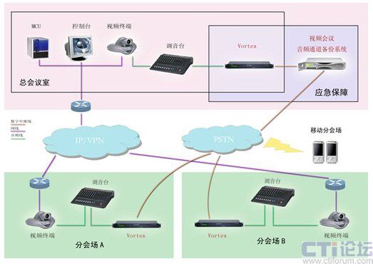 反應(yīng)迅速,確保會(huì)議正常召開:視頻會(huì)議過程中,出現(xiàn)任何故障,用戶可一鍵迅速切換至備份系統(tǒng)。系統(tǒng)即刻通過PSTN網(wǎng)傳輸?shù)臅?huì)議語音,利用已有的音箱、麥克等傳入和傳出會(huì)場,確保會(huì)議語音正常召開。