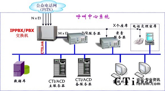 核心控制層——提供系統(tǒng)的CTI核心控制功能,負責協(xié)調(diào)各個周邊模塊的工作。還包括一個智能呼叫路由功能的ACD系統(tǒng)、自動語音處理的IVR系統(tǒng)。