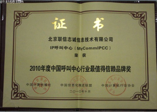 在本次評(píng)選中,北京聯(lián)信志誠信息技術(shù)有限公司(簡稱MyComm公司),其核心產(chǎn)品MyCommIPCC獨(dú)享 2010年度中國呼叫中心行業(yè)最值得信賴品牌獎(jiǎng)。