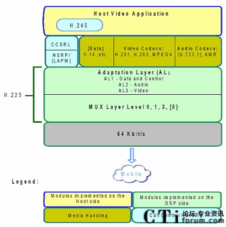 中間層是H.223協(xié)議,負責的媒體混合表格的交換(Multiplex Table),H.223的處理一般是用硬件實現(xiàn),典型的硬件處理芯片是Ti的6xxx視頻處理器。
