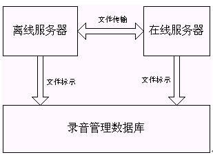 錄音文件通過(guò)HXD09交換機(jī)將語(yǔ)音文件實(shí)時(shí)存放到在線服務(wù)器上。通過(guò)系統(tǒng)的設(shè)置,在線服務(wù)器將超過(guò)保存期限的語(yǔ)音文件移到離線服務(wù)器上,同時(shí)將語(yǔ)音文件管理數(shù)據(jù)庫(kù)本文件進(jìn)行標(biāo)示,標(biāo)示為已經(jīng)為離線語(yǔ)音文件,并將在在線服務(wù)上的語(yǔ)音文件刪除。