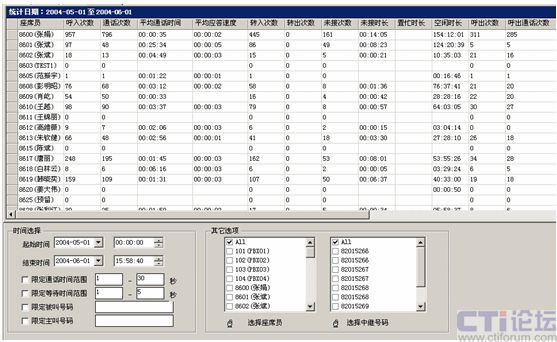 選定不同的座席員(單個或全部座席員),選定時間段內(nèi)的座席員服務(wù)指標(biāo)。