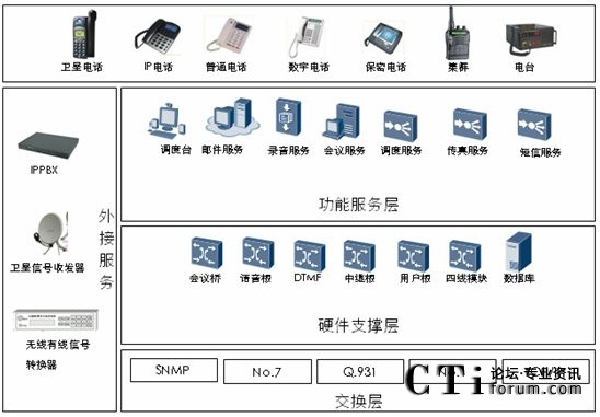 由HXD09-II 智能語音交換機、短信子系統(tǒng)、無線接入系統(tǒng)、短波、超短波系統(tǒng) 接入及預(yù)留的各類接口組成。