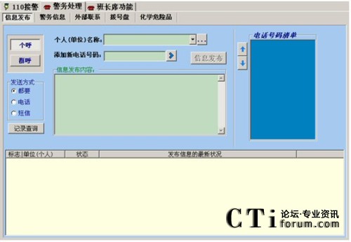 建立在“三臺合一指揮系統(tǒng)”的基礎(chǔ)上,在調(diào)度指令發(fā)送的同時,建立和保持同一線指揮員和作戰(zhàn)人員的通信聯(lián)系,及時準確地將變化情況向有關(guān)領(lǐng)導報告,確保領(lǐng)導在各種通信設(shè)備條件(手機、小靈通、辦公電話、家庭電話)下,在第一時間內(nèi)得到現(xiàn)場信息,極大地減輕了接警員的工作負擔。系統(tǒng)具備如下功能: