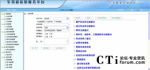 該模塊主要受理三大類業(yè)務:咨詢類業(yè)務、代辦類業(yè)務和投訴建議類業(yè)務,以及提供業(yè)務咨詢和業(yè)務代辦時的相關業(yè)務信息檢索和機動車、駕駛?cè)司C合信息的查詢驗證。