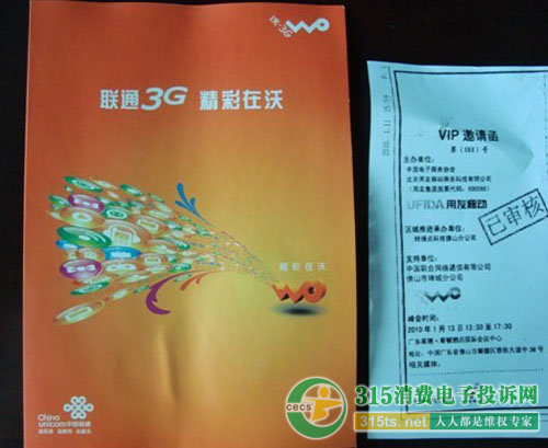 會場到處都洋溢“中國聯(lián)通”的氣息。如現(xiàn)場有眾多中國聯(lián)通的3G宣傳廣告,且發(fā)的材料中還有一份是中國聯(lián)通的宣傳單,另外,會議現(xiàn)場甚至還有聯(lián)通3G手機銷售柜臺。種種情況讓齊先生等人更堅定了他們參加的就是中國聯(lián)通組織的會議。