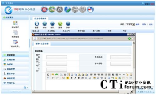具有來電彈屏功能?蛻糍Y料可以進(jìn)行新增、修改、刪除、分配、查詢、查看、導(dǎo)入excel、視圖的創(chuàng)建、編輯、刪除等功能。 |