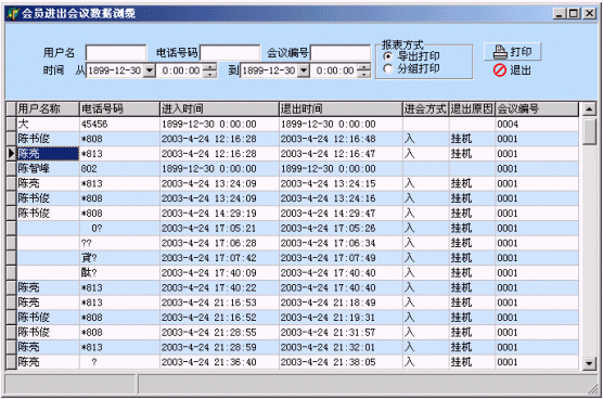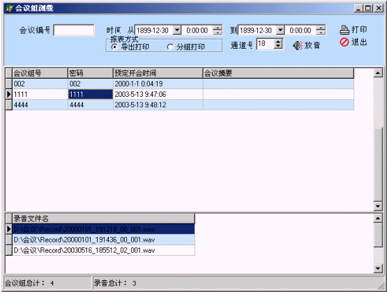 可對(duì)歷史會(huì)議記錄進(jìn)行管理,查看記錄內(nèi)容幾錄音文件(WAV文件格式),以便回放調(diào)聽(tīng),可對(duì)報(bào)表進(jìn)行導(dǎo)出或打印操作