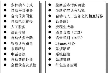 交互式語(yǔ)音應(yīng)答及傳真系統(tǒng)(IVR/IFR) IVR(Interactive Voice Response,交互式語(yǔ)音應(yīng)答)以及IFR(Interactive Fax Response,交互式傳真應(yīng)答)應(yīng)用軟件主要完成系統(tǒng)語(yǔ)音引導(dǎo)、語(yǔ)音交互式語(yǔ)音應(yīng)答、收發(fā)傳真等功能。IVR的使用節(jié)省了人工接續(xù)時(shí)間,使呼叫中心效率大幅度提高,大大降低了運(yùn)營(yíng)成本。在IVR/IFR這方面的產(chǎn)品,HOLLYCRM有HollyIVR。HollyIVR是成熟的電信級(jí)IVR/IFR應(yīng)用軟件產(chǎn)品,可以實(shí)現(xiàn)自動(dòng)語(yǔ)音引導(dǎo)、語(yǔ)音交互式語(yǔ)音應(yīng)答、收發(fā)傳真、圖形化流程開(kāi)發(fā)、系統(tǒng)監(jiān)控管理、自動(dòng)外撥、TTS/ASR等功能,在電信級(jí)和企業(yè)級(jí)等數(shù)幾十個(gè)不同規(guī)模的呼叫中心系統(tǒng)中被廣泛使用 。