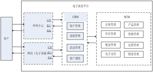 一個企業(yè)發(fā)展電子商務(wù),要涉及到內(nèi)部管理ERP、串起上下游廠商的供應(yīng)鏈,但不論企業(yè)如何發(fā)展,都離不開客戶的聯(lián)絡(luò),如何建立一個有效的客戶聯(lián)絡(luò)渠道是首先要考慮的。那么在電子商務(wù)類型企業(yè)要面對的就是通過網(wǎng)絡(luò)和電話建立這樣的鏈接,也即網(wǎng)站電子商城和呼叫中心來支撐電子商務(wù)應(yīng)用,我們先基于這個角度來分析一下B2C企業(yè)的業(yè)務(wù)模式,看看呼叫中心如何與電子商城相結(jié)合來推動電子商務(wù)的應(yīng)用。