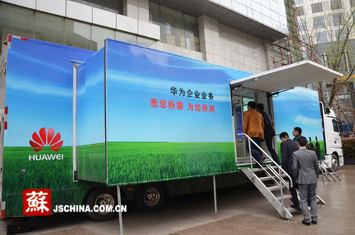 今天下午,“2012炫動ICT中國行——華為企業(yè)業(yè)務(wù)解決方案巡展”江蘇站在南京啟動,作為全球領(lǐng)先的信息與通信解決方案供應(yīng)商,華為通過業(yè)務(wù)展車向市場全面展示ICT(“信息和通信技術(shù)”)行業(yè)解決方案。
