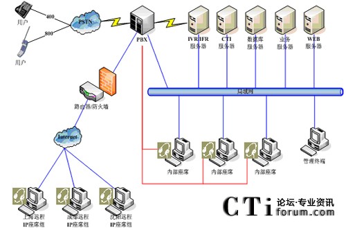 呼叫中心是一種基于CTI技術(shù)、充分利用通信網(wǎng)和計(jì)算機(jī)網(wǎng)的多項(xiàng)功能集成,并與企業(yè)連為一體的一個(gè)完整的綜合信息服務(wù)系統(tǒng),利用現(xiàn)有的各種先進(jìn)的通信手段,效地為客戶提供高質(zhì)量、高效率、全方位的服務(wù)。表面上看,呼叫中心是企業(yè)在最外層加上了一個(gè)服務(wù)層。實(shí)際上,它不僅對企業(yè)的外部用戶具有服務(wù)功能,同時(shí)也為企業(yè)內(nèi)部的管理、服務(wù)、調(diào)度、增值起到非常重要的協(xié)調(diào)作用。