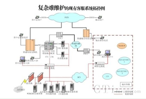 中國鐵通10050客戶服務中心,自2002年全國各省建設完畢后,一直為鐵通的用戶提供各種業(yè)務咨詢、故障處理及投訴申告服務。隨著鐵通用戶數(shù)量的不斷激增,鐵通目前的10050客服中心系統(tǒng)從技術架構、規(guī)模、功能上均無法滿足市場服務需求,所用的各種核心設備也基本停產(chǎn),造成了很大的維護難題。