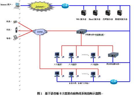 市府熱線系統(tǒng)是一個集合電話語音、計算機網(wǎng)絡(luò)、數(shù)據(jù)庫等技術(shù)的綜合信息服務(wù)平臺,主要由自動語音應(yīng)答系統(tǒng)、人工座席和數(shù)據(jù)庫系統(tǒng)三部分組成。