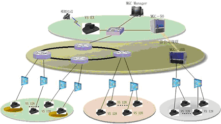 一般來說,在省公司同時參與會議的人數(shù)較多,考慮配置比較大的系統(tǒng),由某一領導召集一些相關成員在此開會;在地市公司同時參與會議的人數(shù)較少,只是一些主要領導參加會議,考慮配置比較小的系統(tǒng);同時,為了實現(xiàn)終端之間管理和傳送音頻、視頻和數(shù)據(jù),需要MCU來協(xié)調(diào)終端的工作,并與上級MCU相級聯(lián),擴大會議的規(guī)模。另外,可以增加一套T.120服務器,該系統(tǒng)是利用多媒體技術(shù)幫助使用者對工作中的各種信息進行處理,如共享數(shù)據(jù)、共享應用程序、實現(xiàn)文件的雙向傳輸?shù),從而?gòu)造出一個多人共享的工作空間。以及增加一套VOD系統(tǒng),它集視頻采集、點播、廣播于一體,這樣就可以將視頻會議的內(nèi)容實時的錄制到本地,也可將一些培訓資料放在視頻點播里,便于對貴公司員工進行培訓,還能通過視頻廣播的功能,讓使用PC機的人員不在會議室,便可以通過瀏覽器實時的看到和聽到正在召開的會議。