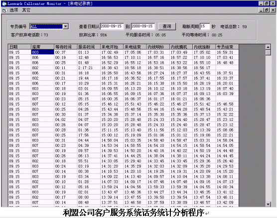 隨著利盟公司客戶服務系統(tǒng)的開通,使傳統(tǒng)的電話服務提高到了一個新的階段;一方面借助客戶服務系統(tǒng)提供的統(tǒng)計分析功能,使客戶服務中心的績效考核更加準確、高效和科學;另一方面通過應用先進的信息技術和產(chǎn)品,可以極大地提高客戶服務的質(zhì)量、效率和滿意度,從而對提升公司形象,促進產(chǎn)品銷售發(fā)揮積極的作用。