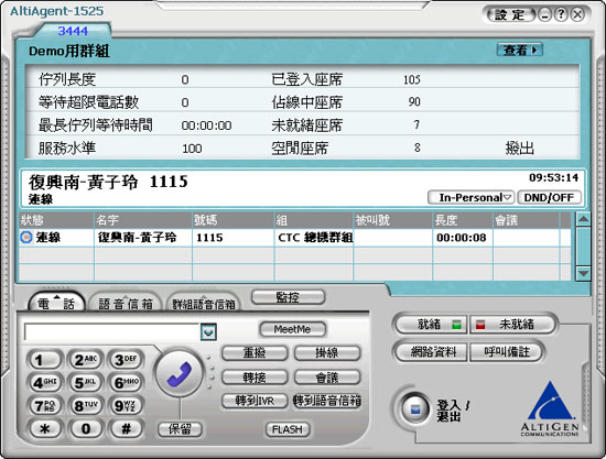 圖:AltiGen電話進(jìn)線后的主畫面,即有轉(zhuǎn)接、多方會(huì)議、保留等功能鍵,達(dá)到全方位通訊。
