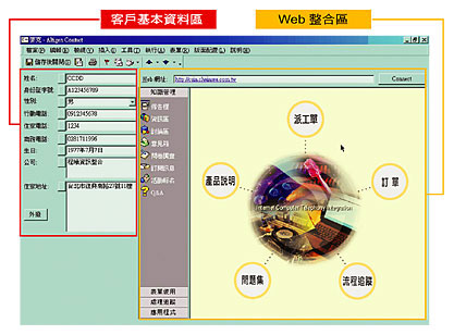 AltiGen可整合Web機(jī)制,Web為全世界Internet的標(biāo)準(zhǔn)介面,更是整合全球資源達(dá)無遠(yuǎn)弗屆境界的功臣,同時(shí)企業(yè)主可在其上輕易開發(fā)或整合其他程式,更可整合Web跑單 (Work Flow)、訂單等功能,使用者可一邊與客戶通話,一邊在電腦螢?zāi)簧舷掠唵位蚍峙晒ぷ,?jié)省人工跑單作業(yè)時(shí)間,提升作業(yè)效率,同時(shí)對于跑單狀況的追蹤管理皆可在統(tǒng)一介面獲得整合,任何更新的進(jìn)度都可第一時(shí)間掌握。