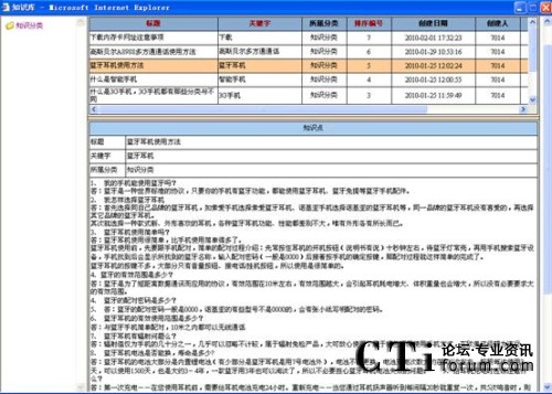 知識(shí)庫可以由企業(yè)相關(guān)人員自行設(shè)定、更新最新的產(chǎn)品知識(shí)、市場(chǎng)信息和競(jìng)爭(zhēng)產(chǎn)品比較等信息。強(qiáng)大的搜索功能也使得查詢更加便利。如當(dāng)客戶提出某問題使得服務(wù)人員無法立即回答時(shí),系統(tǒng)還提供相應(yīng)的填寫欄目以便及時(shí)發(fā)送至主管,請(qǐng)求幫助。而當(dāng)主管對(duì)此問題進(jìn)行回復(fù)后,可以選擇將此問題自動(dòng)放入知識(shí)庫,以便同其他人員分享。系統(tǒng)可以根據(jù)問題的點(diǎn)擊率將最感興趣的問題排列在最前,并可以匯總出一定時(shí)間內(nèi)最感興趣的問題及產(chǎn)品,作為企業(yè)對(duì)服務(wù)人員今后培訓(xùn)的重點(diǎn)。同時(shí),系統(tǒng)將自動(dòng)記錄每一位客戶的咨詢記錄,及時(shí)更新并在客戶再次致電時(shí),顯示在客戶資料當(dāng)中。