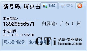 來電彈屏自動(dòng)顯示對方號碼歸屬地?cái)?shù)據(jù)信息;
