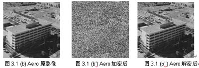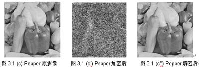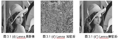 加密過(guò)后的影像,不論以人類的視覺(jué)直接觀看,或計(jì)算其碎形維度D (Fractal Dimension),都顯示影像達(dá)到完全混亂的程度。(2)