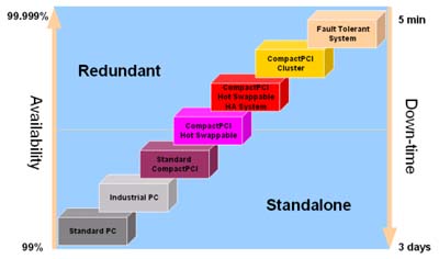 雖然CompactPCI的價格較VME和傳統(tǒng)工業(yè)計算機為高,但就整體考量而言,效價比仍是相當優(yōu)異的。就幾乎無法接受系統(tǒng)損壞停機的電信產業(yè)而言,通訊設備供貨商(TEM)如何規(guī)劃一個價格合理、性能穩(wěn)定的高可用性系統(tǒng)呢?